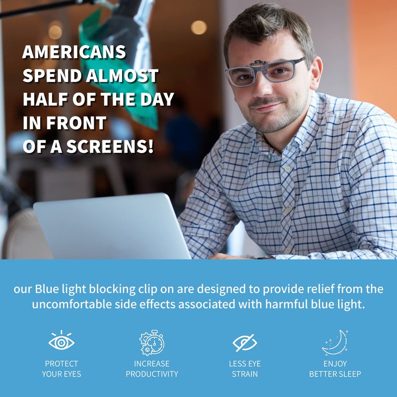 macular degeneration, and more. But with Blue Cut blue light clip on glasses, you can start taking important steps to protect yourself from