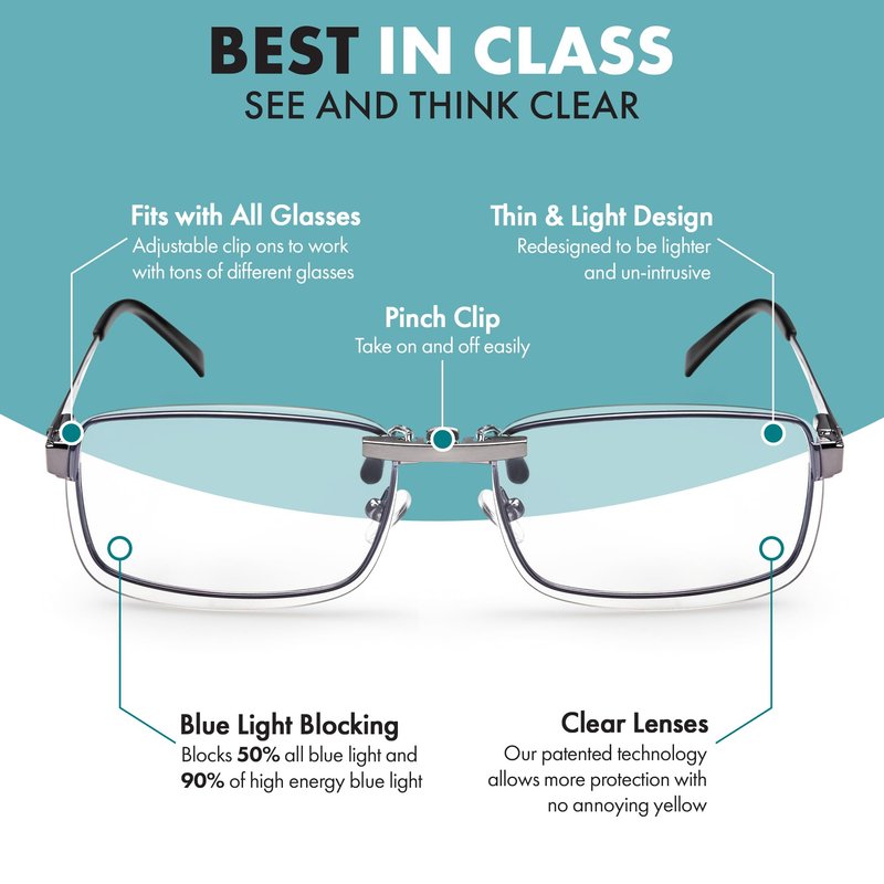 Blue Light Clip On Glasses I Computer Gaming Clip On Glasses I Digital Eyestrain Fatigue I Dry Eyes Relief Eye Protection Sleep Better I Anti Glare