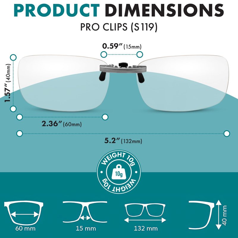 - FITS WITH ALL GLASSES Adjustable clip ons to work with tons of different glasses