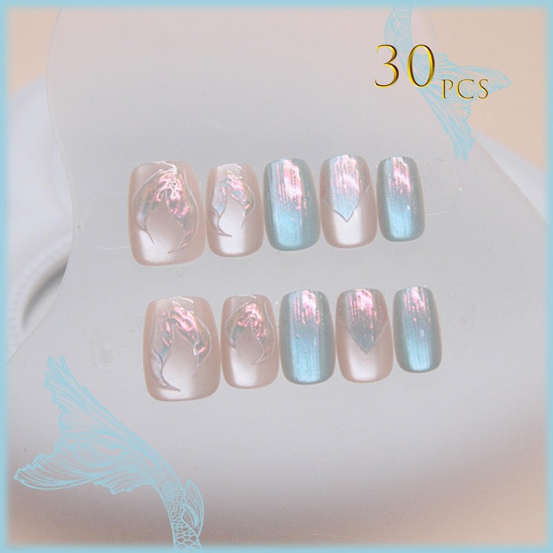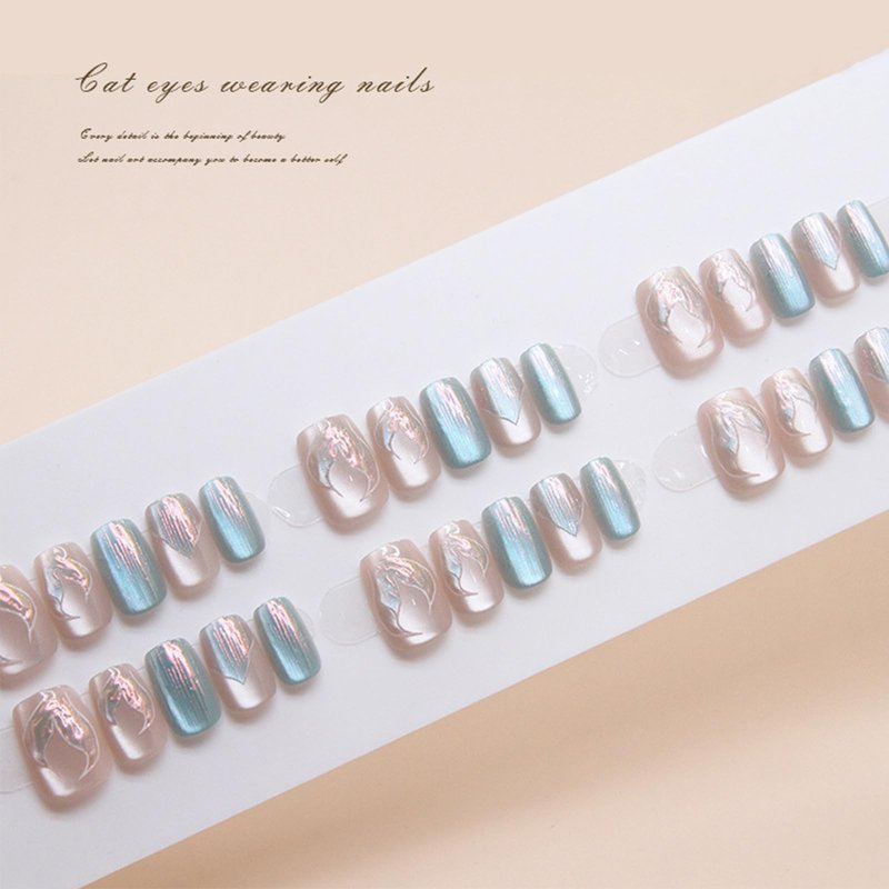 - 【Fast Nail Salon】 Mermaids cat eye fake nails can get your favorite manicure in just 5 minutes without waiting at the nail salon. Just choose the nail piece that suits you, polish the nail bed, paste the jelly glue we give you, and then press the nail for 30 seconds to get your favorite sweet style nail.