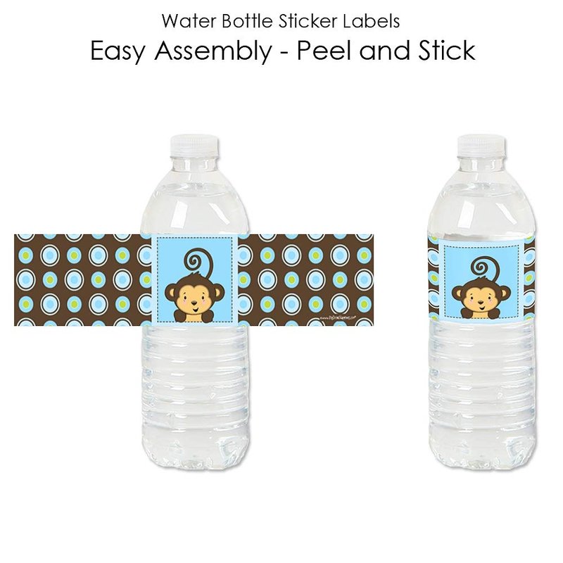 - Blue Monkey Boy Water Bottle Sticker Labels INCLUDES 20 DIY water bottle labels. Blue Monkey Boy DIY party supplies are perfect for quickly dressing up any beverage bottle in your party theme.