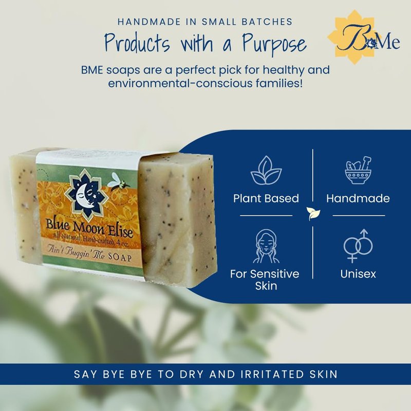 - SOAP FOR KEEPING BUGS AT BAY - Your outdoor sprees will now be protected from bugs and insects with Blue Moon Elise Ain't Buggin Me Citronella soap making it a must-have body skin care product for all the outdoor lovers!