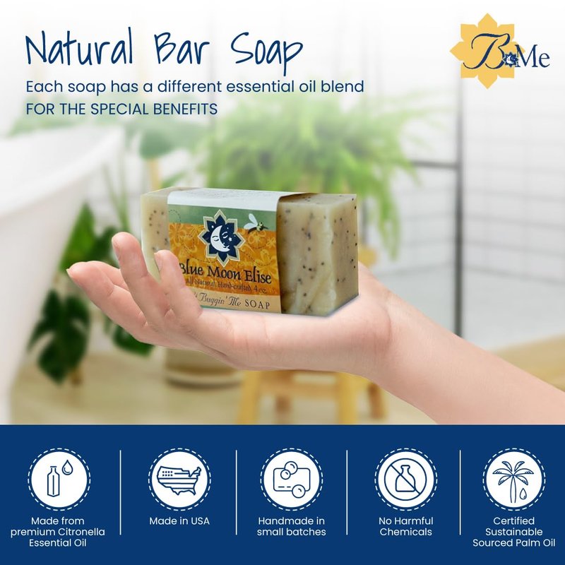 Blue Moon Elise Ain't Buggin Me Citronella Bar Soap for Men and Women, Natural Handmade Soap with Pure Citronella Essential Oils, Soap Bar for Camping and Outdoor Activities