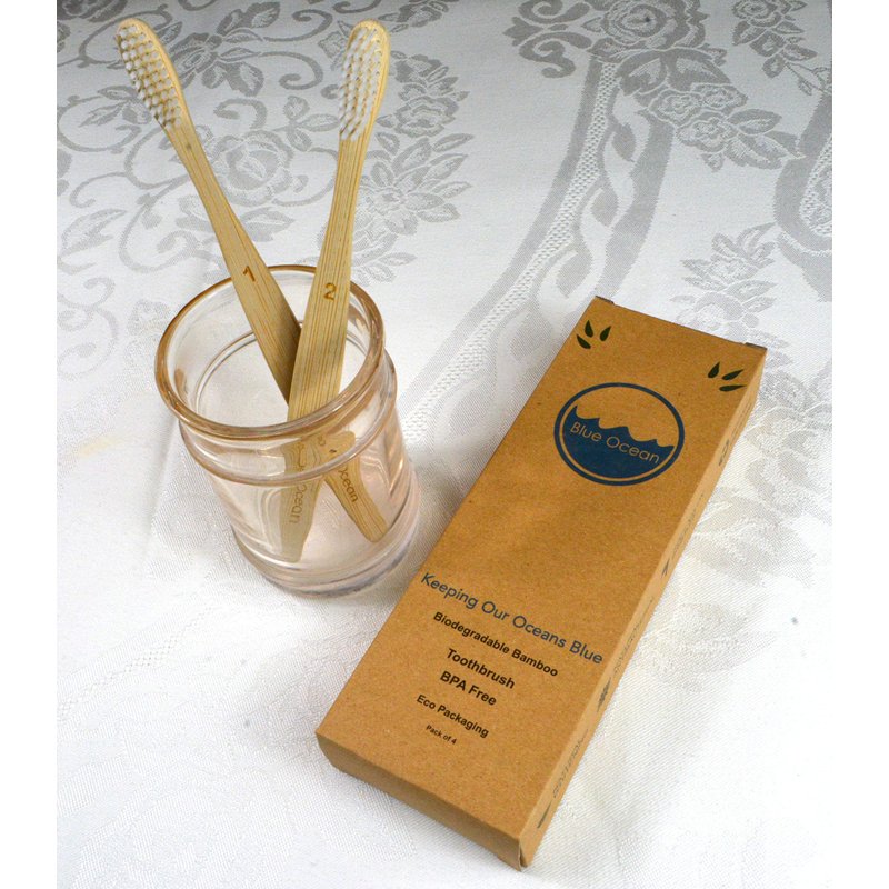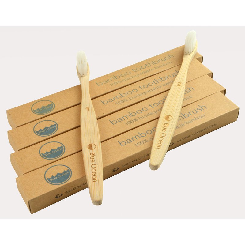 Blue Ocean Natural Bamboo Toothbrush Eco-Friendly, Soft Bristles, Pack of 4