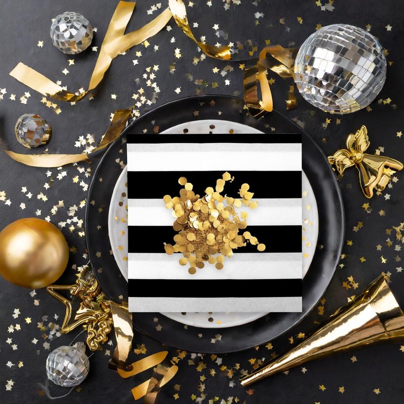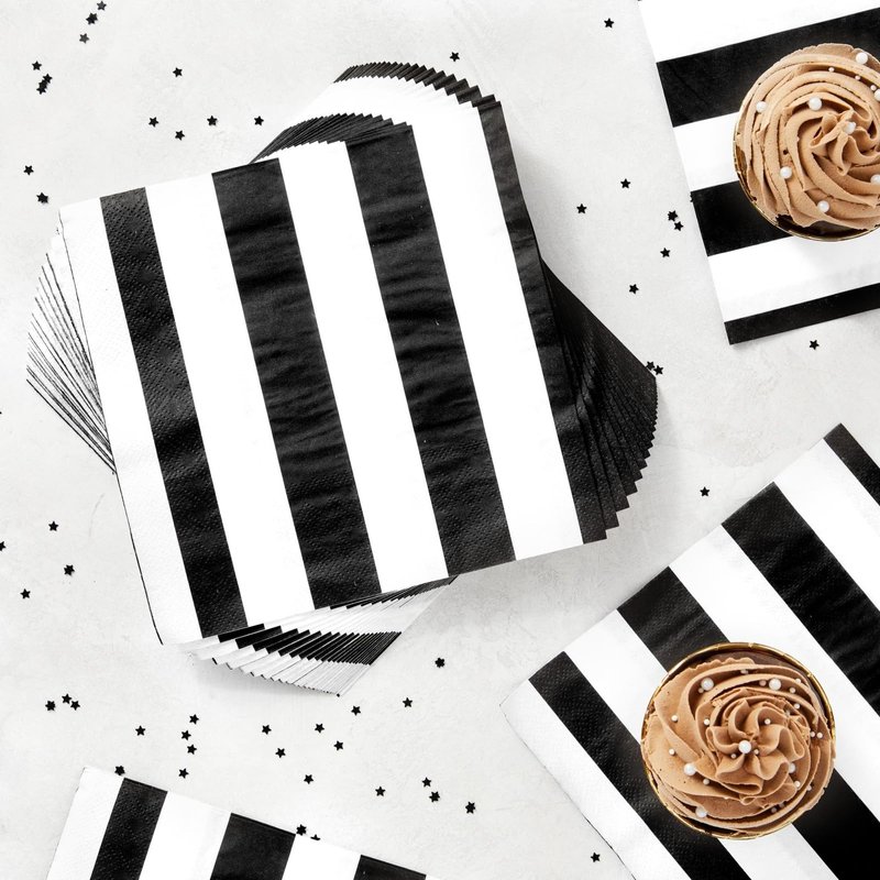 - Black and White Party Supplies: Elevate your celebrations with this classic black and white stripe napkin set. Perfect for birthday parties, graduation ceremonies, bachelor parties, Halloween, New Year's Eve, or any festive occasion, these stylish and versatile party napkins will add a touch of elegance and sophistication to your gatherings