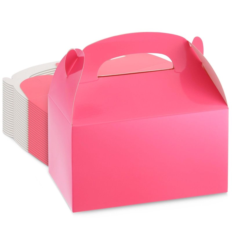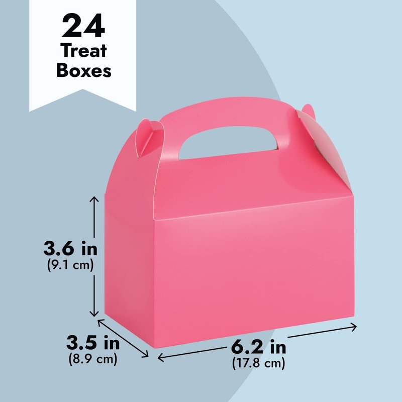 - What's Included: A bulk set of (24) pink gable boxes with handles measuring 6.2 x 3.5 x 3.6 inches each. These sturdy gift gable boxes provide an ample supply for party planning and stocking up for multiple events, ensuring both convenience and cost-effectiveness