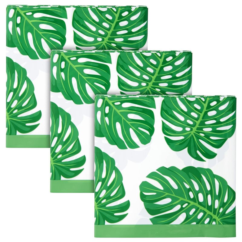 BLUE PANDA 3 Pack Tropical Leaves Tablecloth for Hawaiian Luau, Safari Birthday Party Decorations, Baby Shower (54 x 108 in)