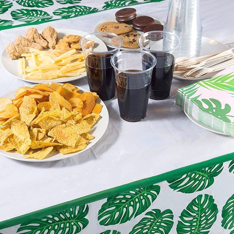 - Tropical Party Supplies: Instantly elevate your Hawaiian luau party decorations with our set of plastic table covers; the festive green leaf design will effortlessly complement your party theme