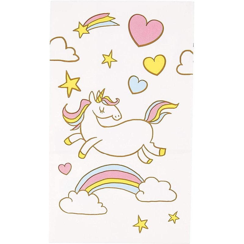 - Unicorn Party Decorations: Complete your rainbow unicorn party decor with these white favor bags; hand them out to guests as they arrive, or place on the dining tables