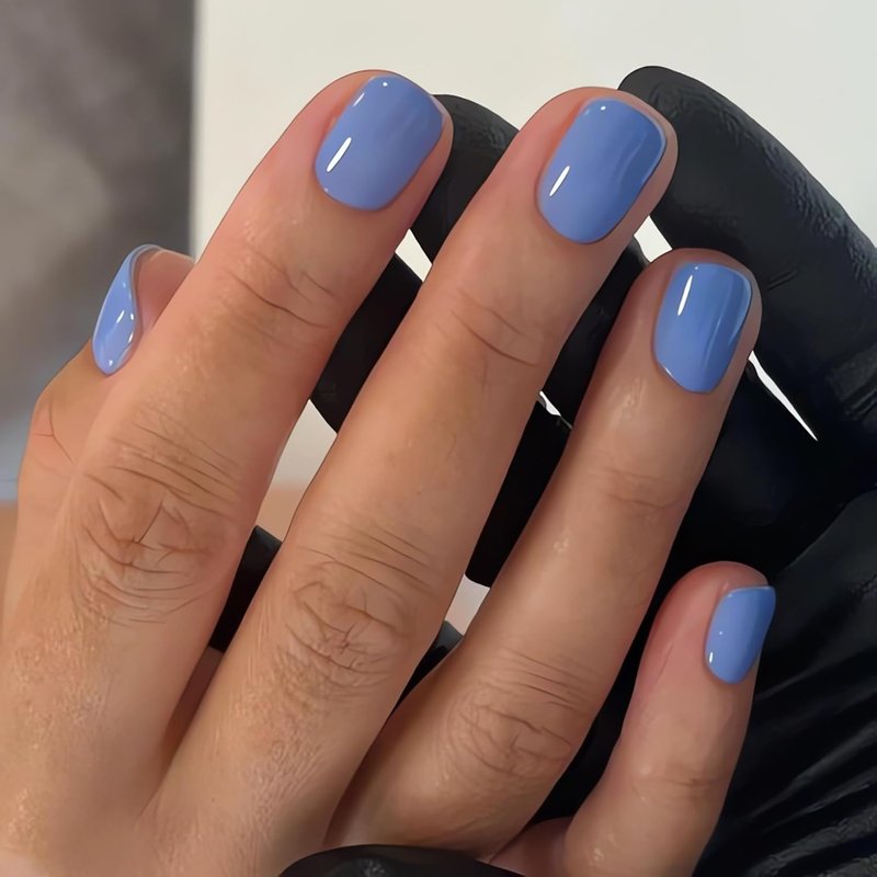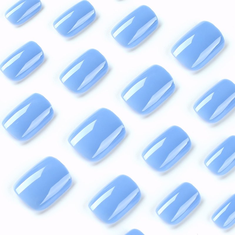 Blue Press on Nails Extra Short Fake Nails Square Petite Solid Color Acrylic Nails Baby Blue Short False Nails with Designs Light Blue Reusable Artificial Stick on Nails for Women Girls DIY Manicure