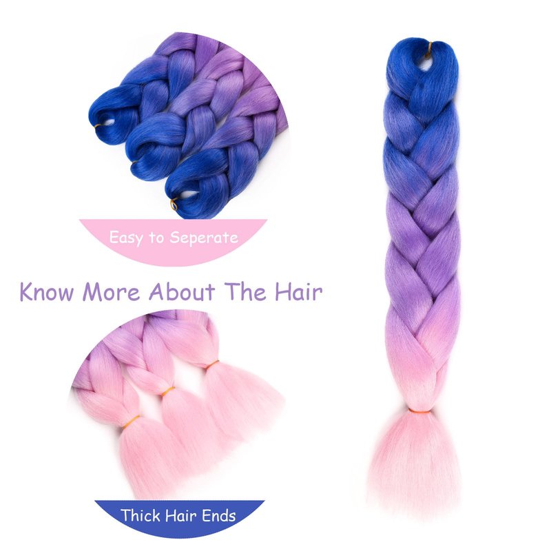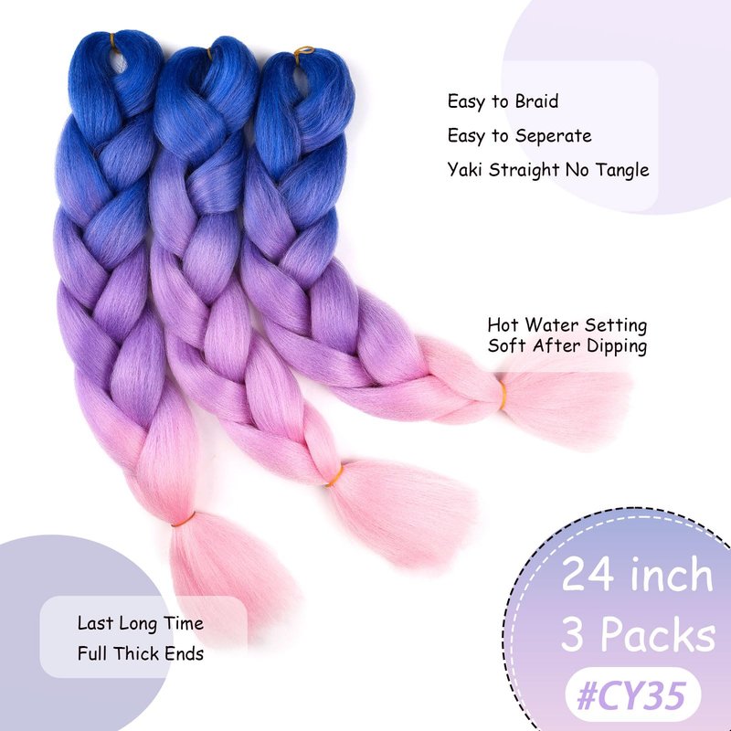 Blue Purple Pink Braiding Hair Extensions Ombre Braiding Hair 3 Packs 24 inch Synthetic Hair for Braiding