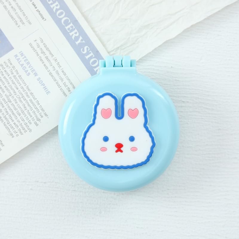 Blue Rabbits Mini Hair Brush for Purse, Pocket Hair Brush with Mirror for Girls, Cute Portable Foldable Travel Mirror Hair Brushes Round Hair Comb Compact Massage Comb, Hair Brushes (2H975)