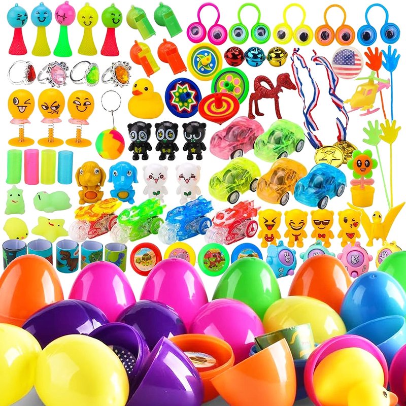 - ✅VARIETY OF SURPRISES: Each pack includes 48 colorful plastic eggs, each filled with a different kind of little toy. Kids will be delighted by the wide range of surprises waiting inside each egg.