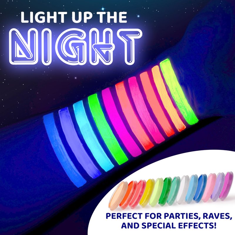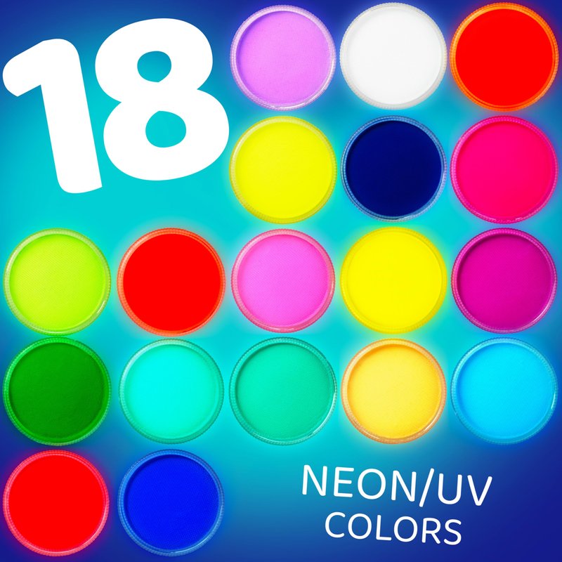 - β π¨π© πππ§ππ©ππ§ππ β All Blue Squid UV PRO paints are water-based and UV-activated. Just add a few drops of water & use a sponge or brush to apply smoothly to the skin. Our buildable, blendable, & creamy formula contains intense neon pigmentation for awesome coverage & vibrant color payoff that glows in the dark under UV blacklight.