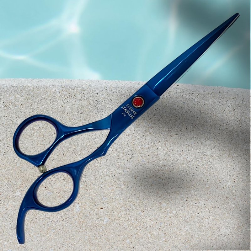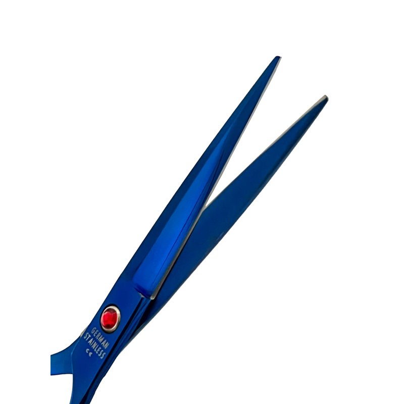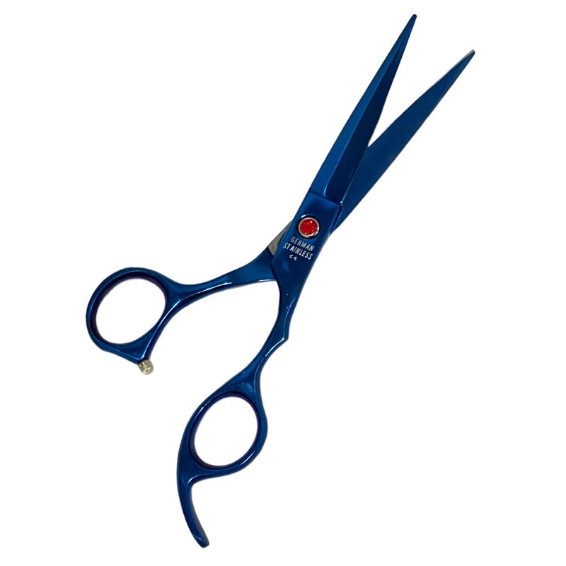 Blue Titanium Hair Cutting Barber Shears 6.75" (17.145cm) with Curved Finger Rest Classic Design - German Stainless