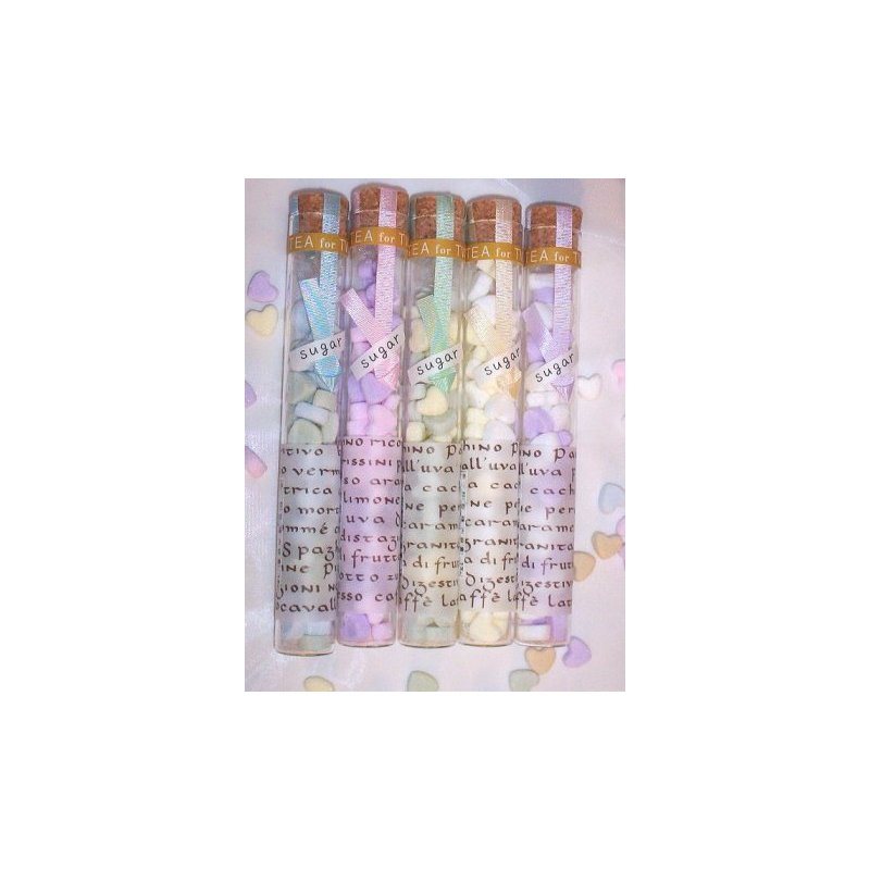 Heart shaped sugar in glass cylinder. Great gifts for weddings, birthdays, Valentine's Day. Price is per tube. Cubes are ~1/4"