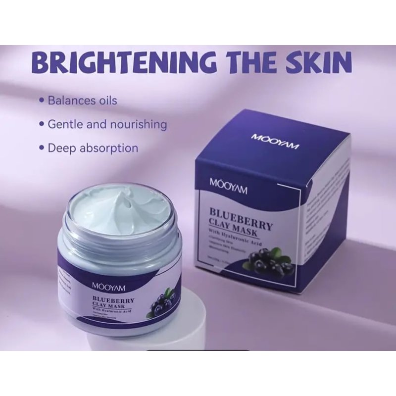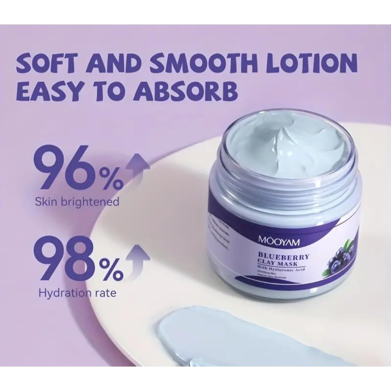 Blueberry Clay Mask With Grape Seed And Almond Oil, Rejuvenate Your Skin, Deep Cleansing Blueberry Mud Mask For Pore Minimization, Improve Even Skin Tone Mud Mask 4.2oz