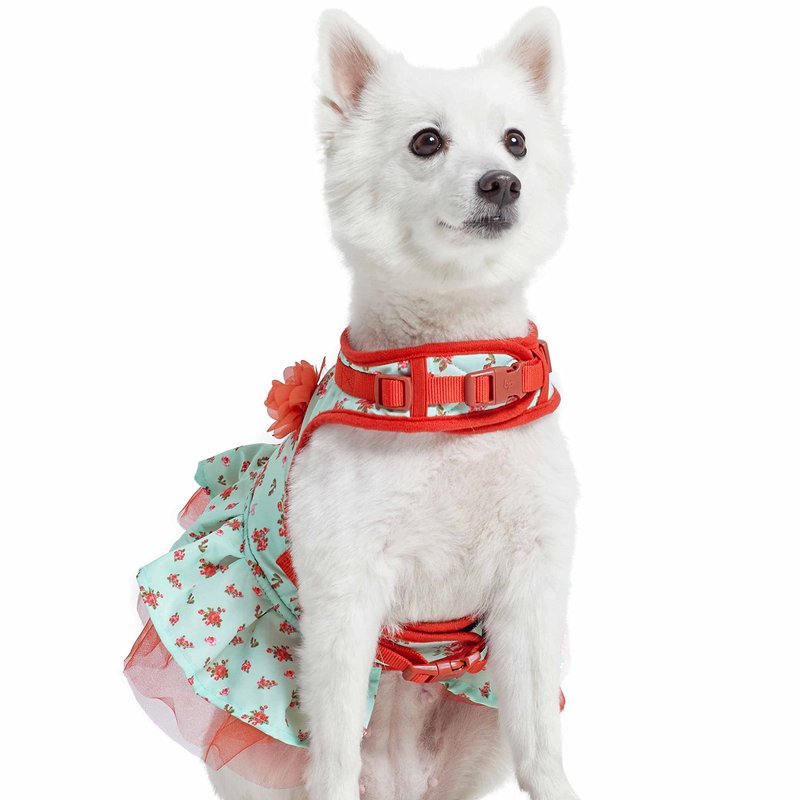 Blueberry Pet Soft & Comfy Spring Scent Inspired Floral No Pull Mesh Puppy Dog Costume Harness Dress, Turquoise, Chest Girth 14"-16", X-Small, Adjustable Harnesses for Dogs