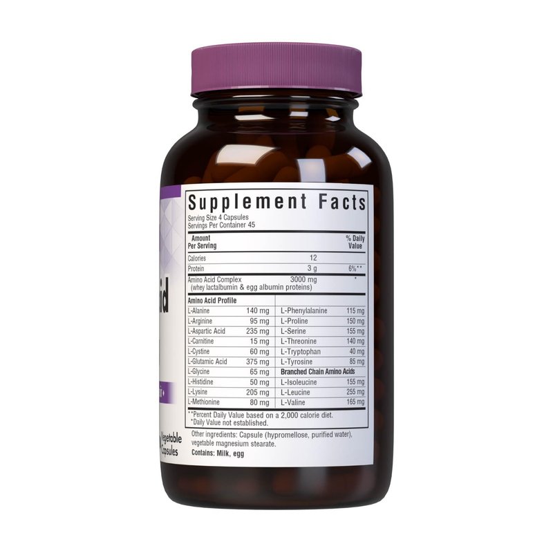 Bluebonnet Amino Acid 750 mg Vitamin Capsules, White, 180 Count