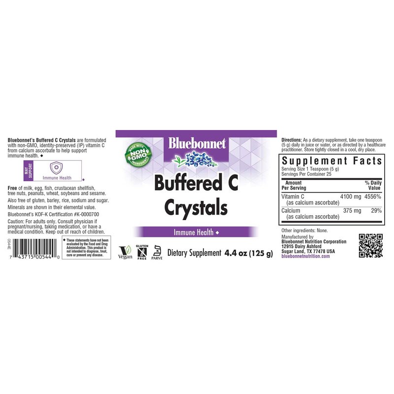 Bluebonnet Nutrition Buffered C Crystals, Buffered Vitamin C Powder, for Immune Health, for Antioxidant Protection, Soy Free, Gluten Free, Non-GMO, Kosher, Dairy Free, Vegan, Powder, 4.4 oz (125 g)