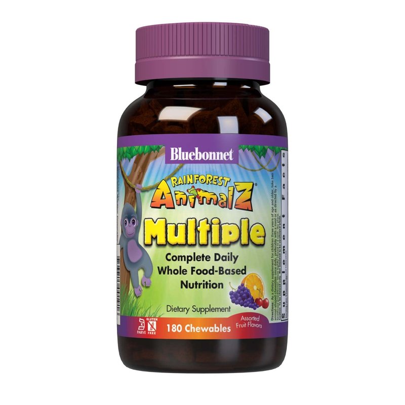 Bluebonnet Nutrition Rainforest Animalz Whole Food Based Multiple Chewable Tablet, Kids Multivitamin & Mineral, Vitamin C, D3, Iron, Gluten Free, Milk Free, Kosher, 180 Chewable Tablets, Mixed Flavor