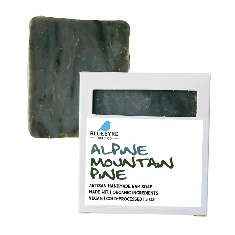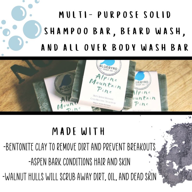 Bluebyrd Soap Co. Alpine Mountain Pine Mens Soap Bar | Masculine Scented Soap Pore Cleansing Bar With Bentonite Clay | Men's Acne Bar Soap -Vegan, Natural, Organic Ingredients (MT. PINE)