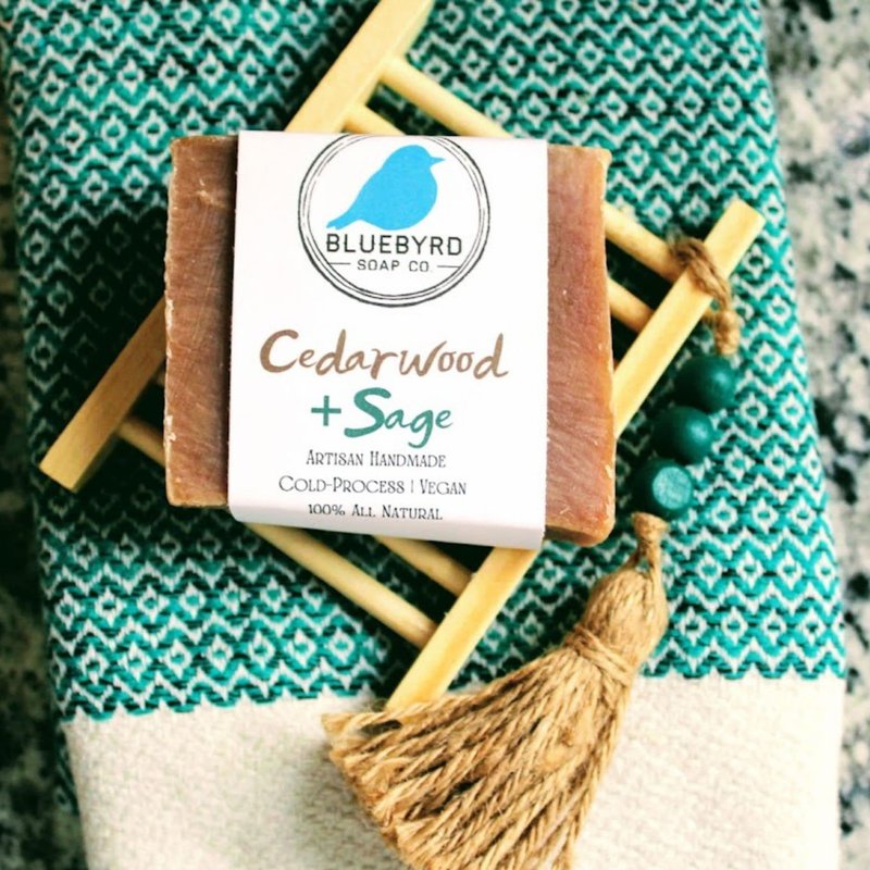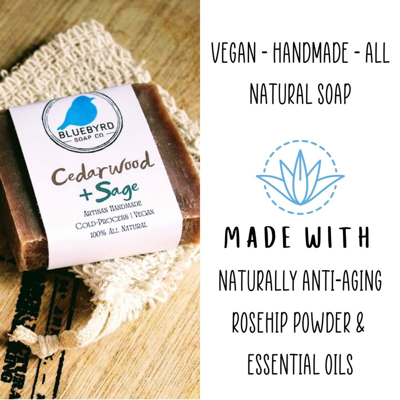 Bluebyrd Soap Co. Cedarwood + Wild Sage Bar Soap | 100% All Natural Essential Oil Soap Bar | USA Made Mens Organic Body Wash Bars | Vegan + Chemical Free (Cedarwood)