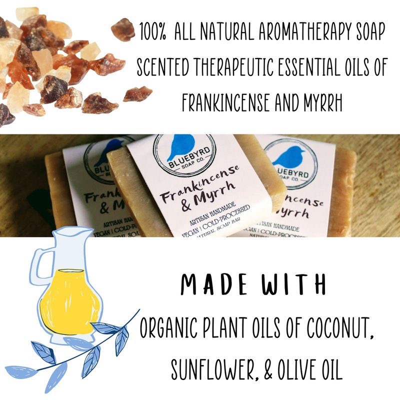 - ALL NATURAL FRANKINCENSE AND MYRHH ESSENTIAL OIL BLEND SOAP BAR: Two biblically noted oils, frankincense and myrrh combine to create a sweet and rich all-natural soap bar with deep earthy notes.