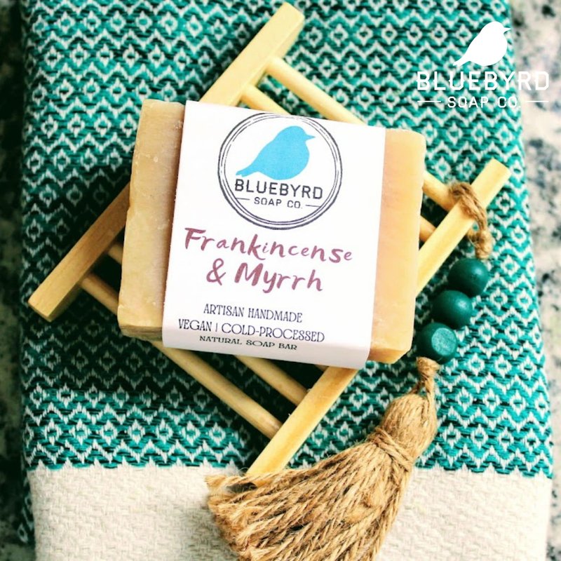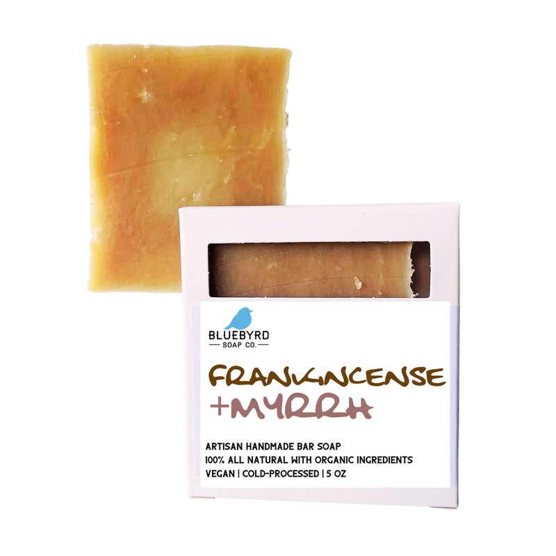 Bluebyrd Soap Co. Frankincense & Myrrh Soap Bars 5oz | 100% All Natural Soap - Scented with Pure Essential Oils | Vegan Moisturizing Coconut Oil Soap Bars For Body, Face, & Bath (Frankincense)