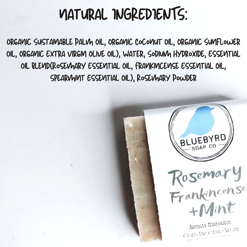 Bluebyrd Soap Co. Rosemary Frankincense + Mint Natural Soap Bar | Herbal Bar Soap -Naturally Scented With Essential Oils | USA Handmade Vegan Face & Body Wash Bar for Women & Men (Rosemary)