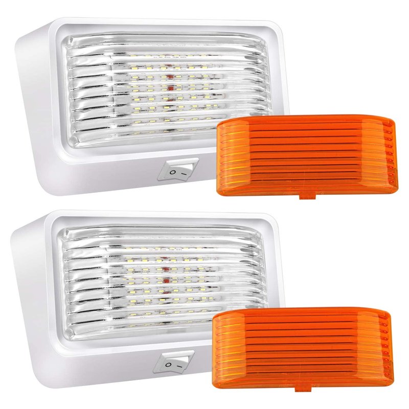 BlueFire Super Bright LED RV Porch Light RV Exterior Lights Porch Utility Light 12V Replacment Light with ON/OFF Switch, Clear and Amber Removable Lens for RV, Trailer, Camper (2 Pack)