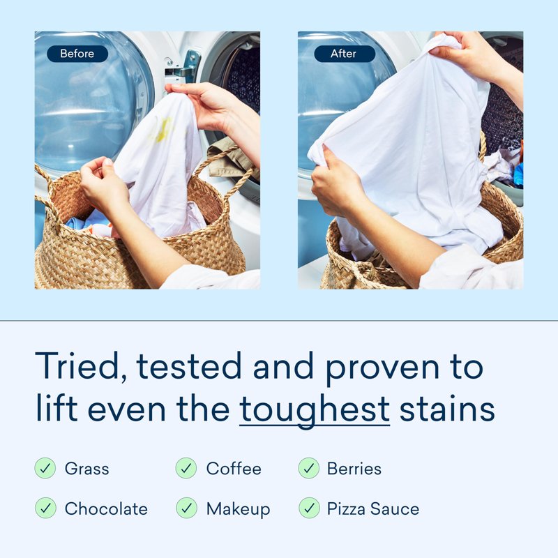 - EFFECTIVE. Patented detergent tablet powered by enzymes is proven to lift the toughest stains, from grass and coffee to food and makeup. Keeps whites white and colors bright.