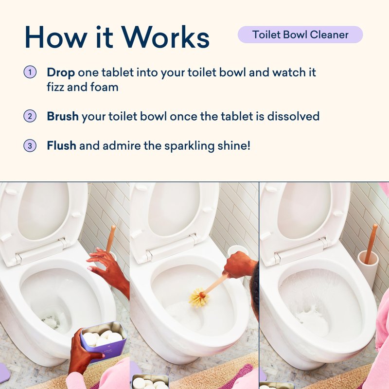 - EASY TO USE: Just drop, brush, and flush! Drop one tablet into your toilet bowl and watch it fizz and foam. Give it a flush, admire the shine, and refill your Forever Tin when empty.