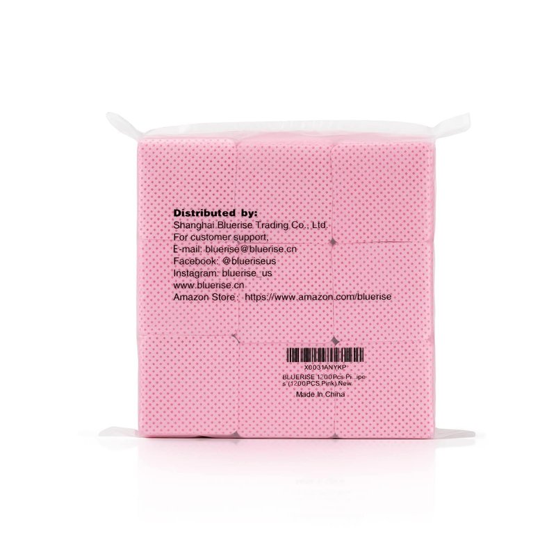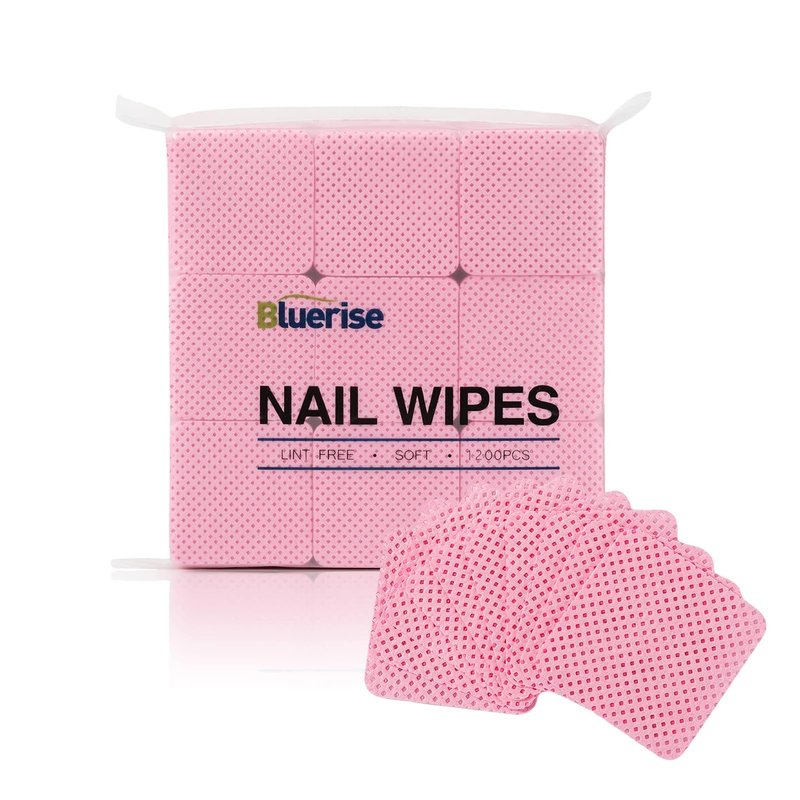 BLUERISE Lint Free Nail Wipes Pink 1200pcs Nail Polish Remover Pads Soft Absorbable Eyelash Extension Glue Cleaning Wipes