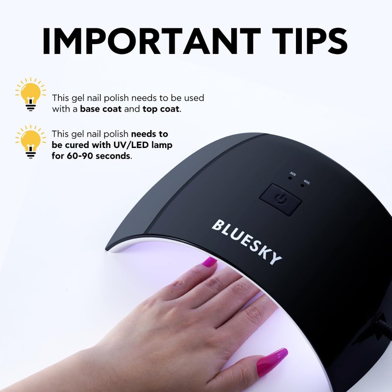 - Quick Drying & Easy Removal: BLUESKY Gel Nail Polish cures quickly under a UV or LED lamp, saving you time and ensuring a smudge-free finish. When you're ready for a change, our soak-off formula allows for easy and gentle removal without damaging your nails.