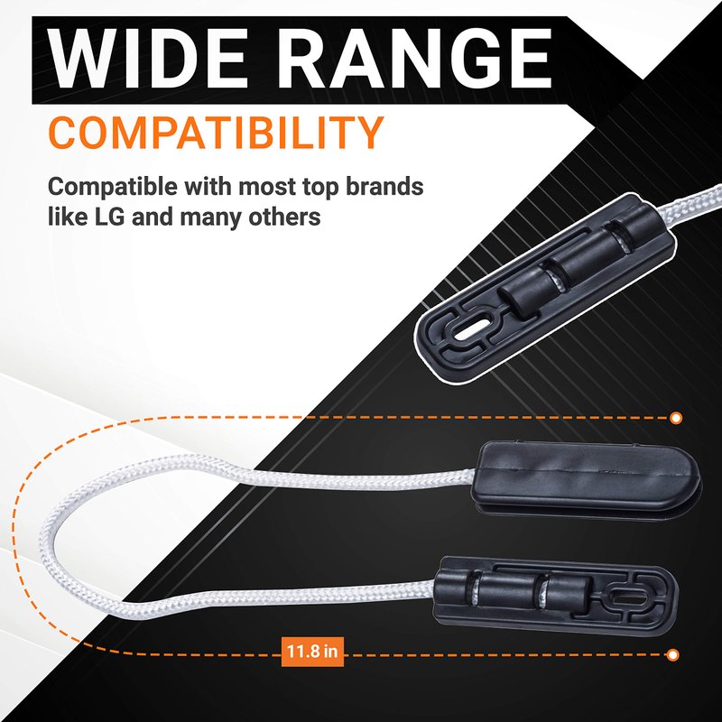 - β SUPERIOR QUALITY: 4933DD3001B Dishwasher Door Hinge Cable is well-designed with high-grade ABS plastic holding pieces and strong wear-resistant rope - For balanced holding of your heavy dishwasher door and frequent use in the long run - Meets OEM standards. Two plastic pieces are approximately 2 inches in length by 3/4 inches in width, as well as a rope portion is approximately 8 inches in length.