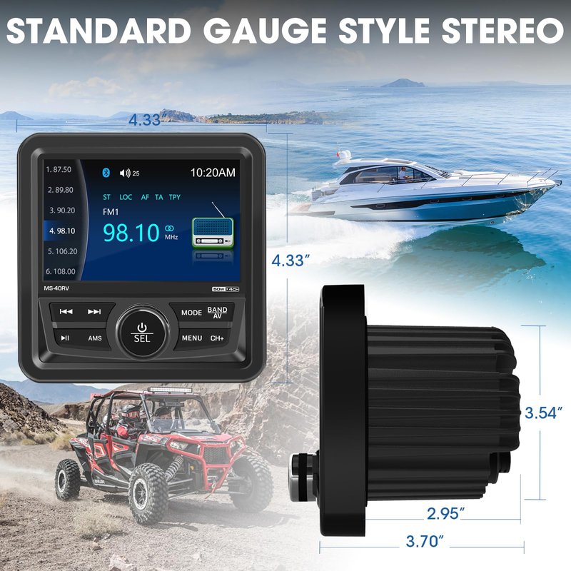 - Marine Audio System for Outdoor Adventure: The marine gauge stereo stands out with water-resistant IPX5 rating feature for durability against dust, humidity, and saltwater exposure, suitable for harsh marine environments, as well as outdoor off-road vehicles, ATVs, UTVs, RVs, Golf Carts, motorcycles, camper