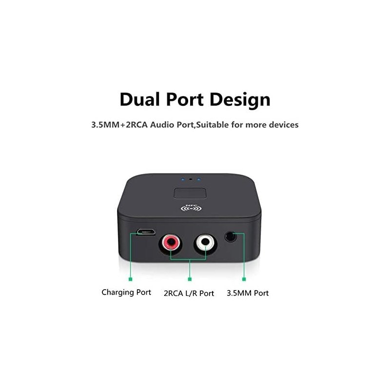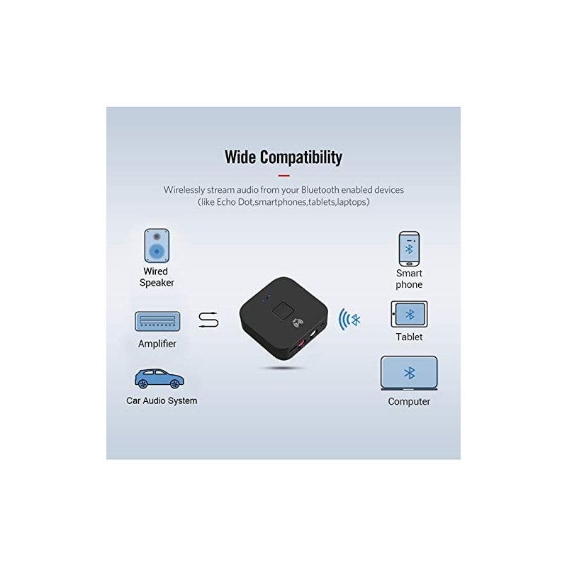The wireless audio adapter can be connected to any A/V receivers and any powered speakers with standard 3.5mm jack or 2RCA ports, ideal compatible for home theaters, stereo systems, and car stereos, also suitable for iPhone, iPad,iPod Touch, Smart Phones, and Android devices