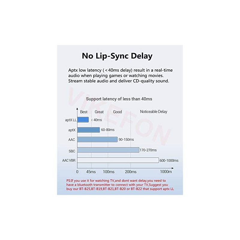 - 【Supports Qualcomm aptX Low Latency】Qualcomm aptX Low Latency audio ensures your Bluetooth wireless enabled device can deliver sound in sync with visual media. It reduces delay and improves end-to-end speed of the audio transmission, resulting in a high quality, synchronised user experience.With aptX Low Latency you can enjoy the freedom of wireless for applications such as gaming and watching videos.