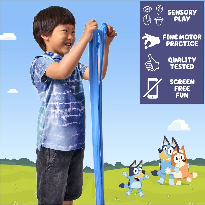- SQUISH, STRETCH, SCULPT: Bluey Slimy Sand combines the fun of moldable sand with the satisfying stretch of slime. Squeeze it, mold it into silly shapes, or stretch it to see how it expands!