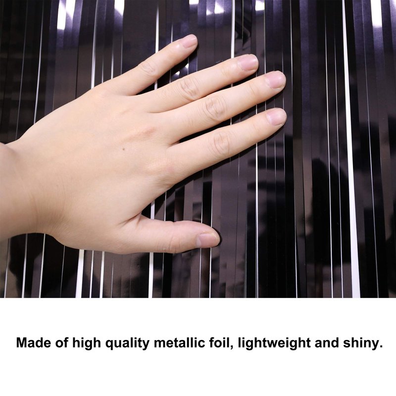 Blukey Black Parade Float Foil Fringe Skirting Decorations- Pack of 3 - Each 10 Feet by 15 Inch, Metallic Tinsel Drapes Garland Party Supplies for Bridal Shower, Bachelorette, Easter Day, Halloween