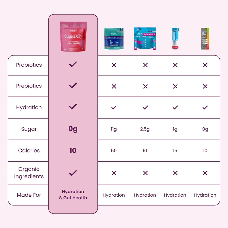 Blume SuperBelly Gut Health and On-The-Go Hydration Packets, Sugar-Free, with Prebiotics, Probiotics, Apple Cider Vinegar, Vitamin C, and Electrolytes, Strawberry Hibiscus, 15 Sticks