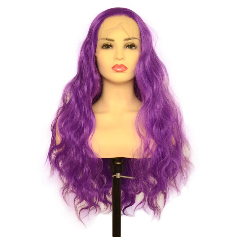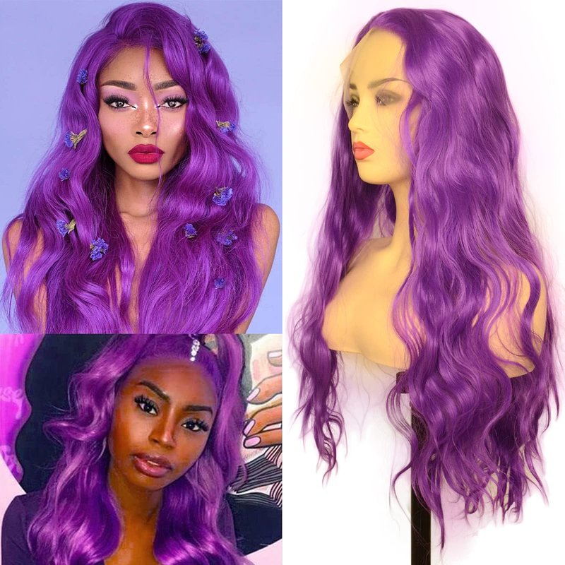 BLUPLE Purple Lace Front Wigs Long Body Wave Heat Resistant Free Part 22 Inch Synthetic Hair Replacement Wigs for Women Cosplay Party Show