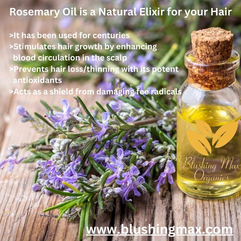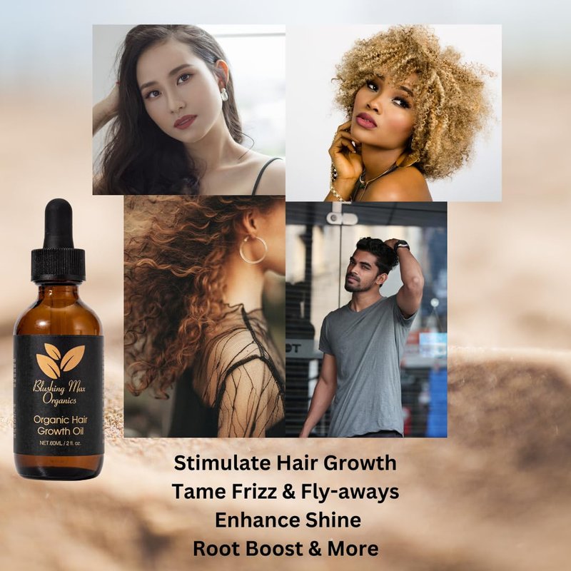 Are you tired of dull, lackluster, damaged, or thinning hair that has lost its former glory? Has hair loss due to factors like illness, hormones, or simply the passage of time left you yearning for the days of luxurious locks? At Blushing Max Organics, we understand that your hair is your crowning glory, so we've poured months of research and dedication into creating the perfect hair growth oil to rejuvenate and re-grow your locks. The result? A top-tier product with top-sourced ingredients like rosemary oil, castor oil, biotin, peppermint oil, coconut oil, grape seed oil, tea tree oil, and ginger oil that will have you strutting down the street with the kind of confidence that makes heads turn and hearts race. Get ready to fall in love with your hair all over again! DYN that Rosemary oil is a natural and versatile ingredient that has been used for centuries? It is renowned for its efficacy in promoting hair growth and sustaining hair health. Castor oil can boost hair growth up to five times the usual rate, and it can help grow hair on eyebrows and eyelashes. It helps moisturize your scalp. Biotin is the enzyme responsible for hair, skin, and nail health. Biotin oil enhances the growth and strengthening of hair fibers.Coconut nourishes, adds shine & stimulates hair growth. Each of the ingredients in our oil were hand picked for their benefits.