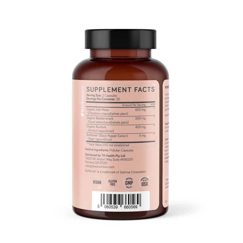 BLYSS Nutrition Organic Sea Moss Capsule - Burdock Root Capsule with Bioperine - Irish Sea Moss Organic for Gut Health - Vegan Sea Moss Pill for Boosting Energy - Anti Aging Capsules with Burdock Root