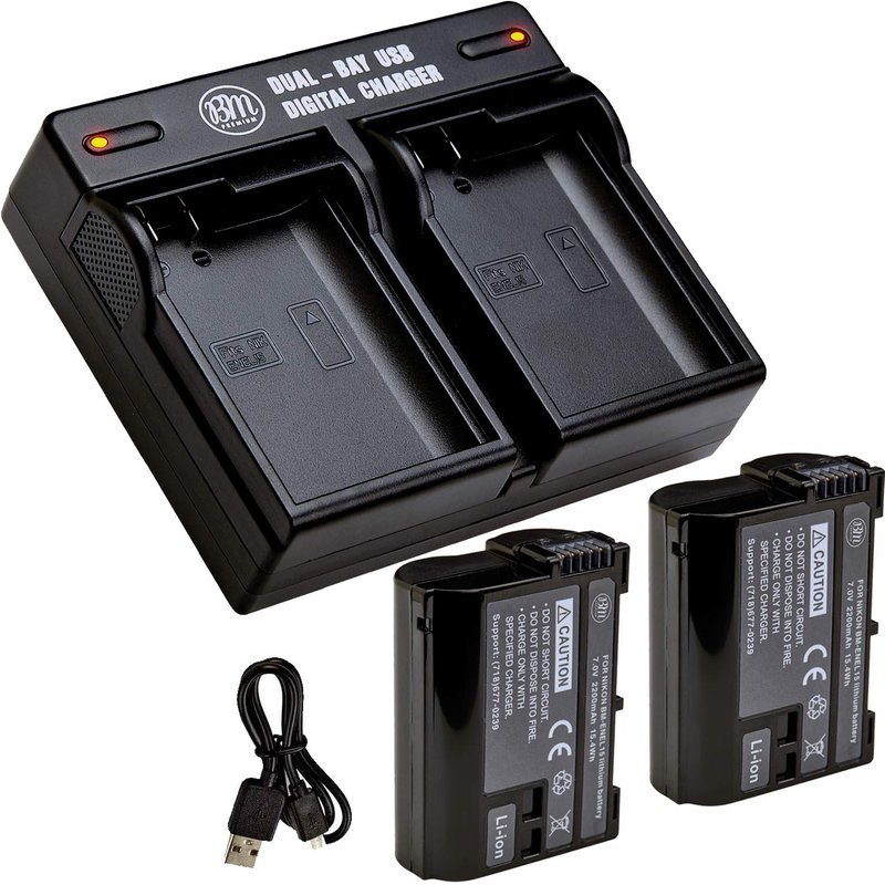 BM Premium Pack of 2 EN-EL15 Batteries and USB Dual Battery Charger Kit for Nikon D7500, 1 V1, D500, D600, D610, D750, D800, D810, D810A, D850, D7000, D7100, D7200 Digital SLR Cameras