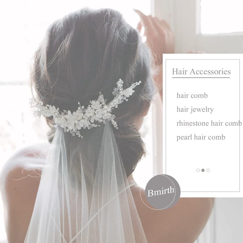 Bmirth Wedding Hair Combs Silver Flower Hair Comb Pearl Bridal Hair Piece Crystal Bride Hair Accessory for Women and Girls