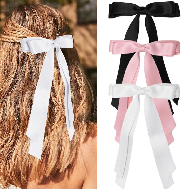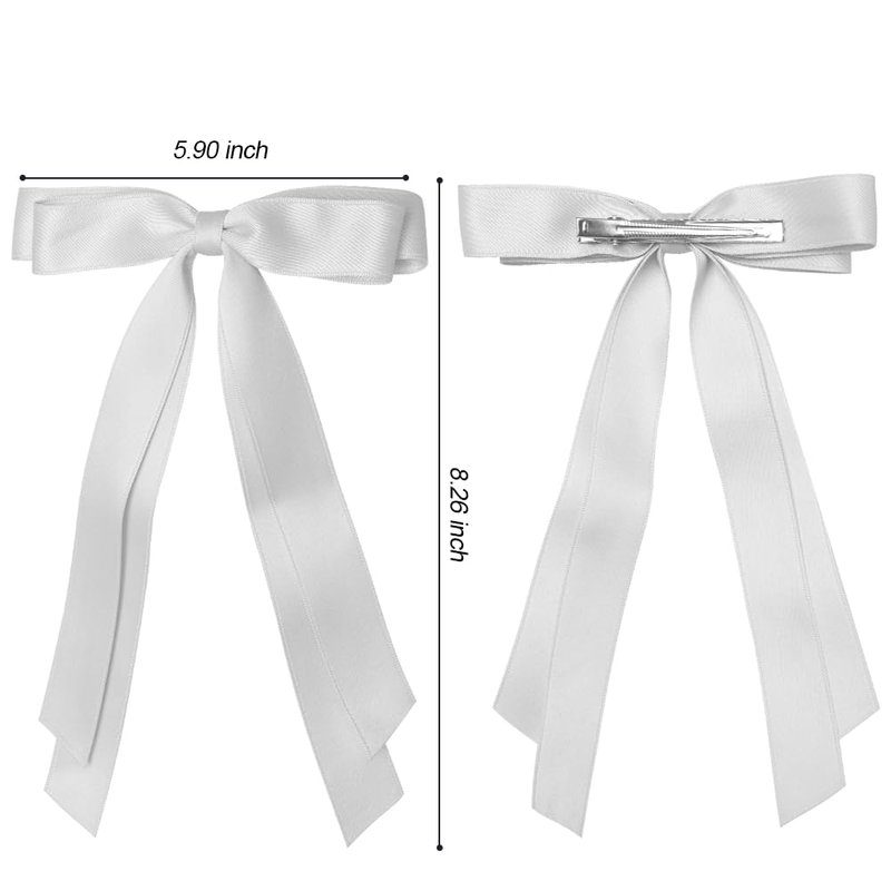 - 【Ribbons Bows Clips For Hair】 These hair bows are made of metal clip and soft satin material, with long tail. There are three colors: black, white, pink, perfect for women and girl daily wear.
