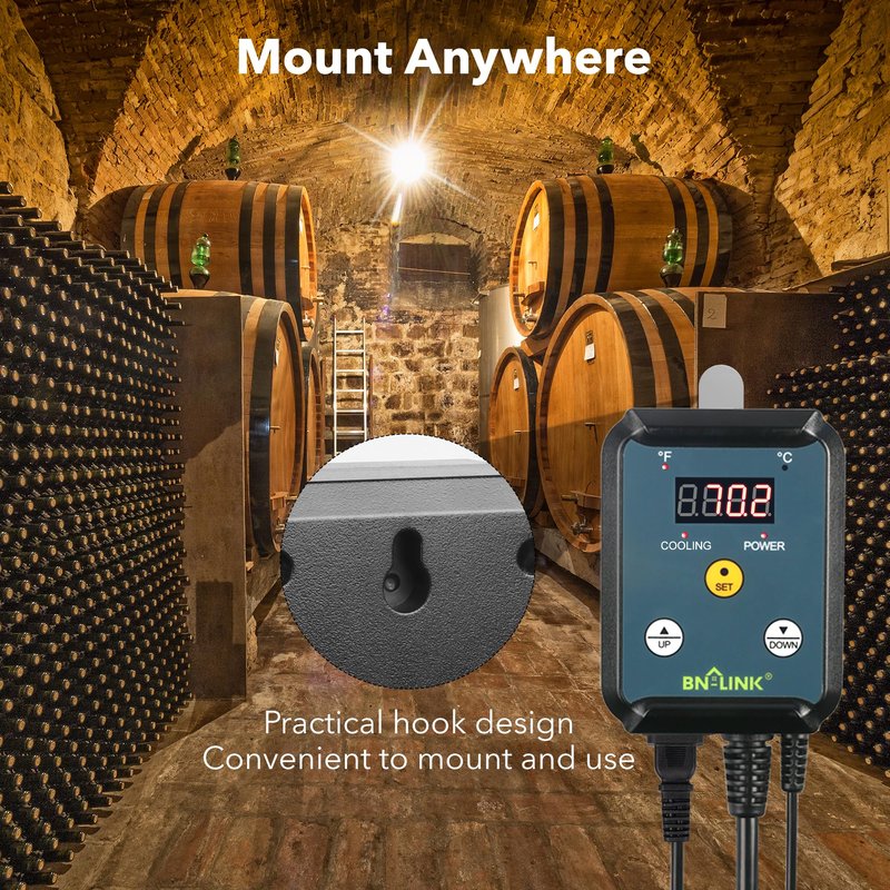 The BN-LINK digital cooling temperature controller is designed to control the cooling devices in order to optimize crop-specific growing requirements. Easy to use, a digital display controls the devices' output temperature, which ranges from 40 to 108 °F (5 - 42°C). Depending on the user's preference, the temperature can be toggled to display in degrees Fahrenheit or Celsius. Our digital thermostats feature a standard, three-prong ground plug and are compatible with all heat mats. Provides constant optimal temperatures. Protect your safety with isolated strong wires and ETL certificate. How to adjust temperature setting: Press and hold ‘Set’ button for 3 seconds to enter the temperature selection mode, Press ‘Up’ or ‘Down’ button to adjust the temperature, press ‘Set’ button again to select the displayed temperature as the target, Press ‘Set’ button to display the preset temperature. The current measured temperature will be shown when no button is activated.