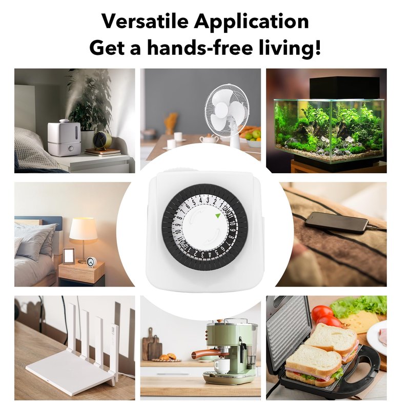 - ✓ AUTOMATE YOUR HOME OR OFFICE: These 2 prong timers for electrical outlets. Turn on and off lamps, fish tank, small appliances, Christmas trees, and other electrical devices with the handy 24 hr mechanical indoor timer